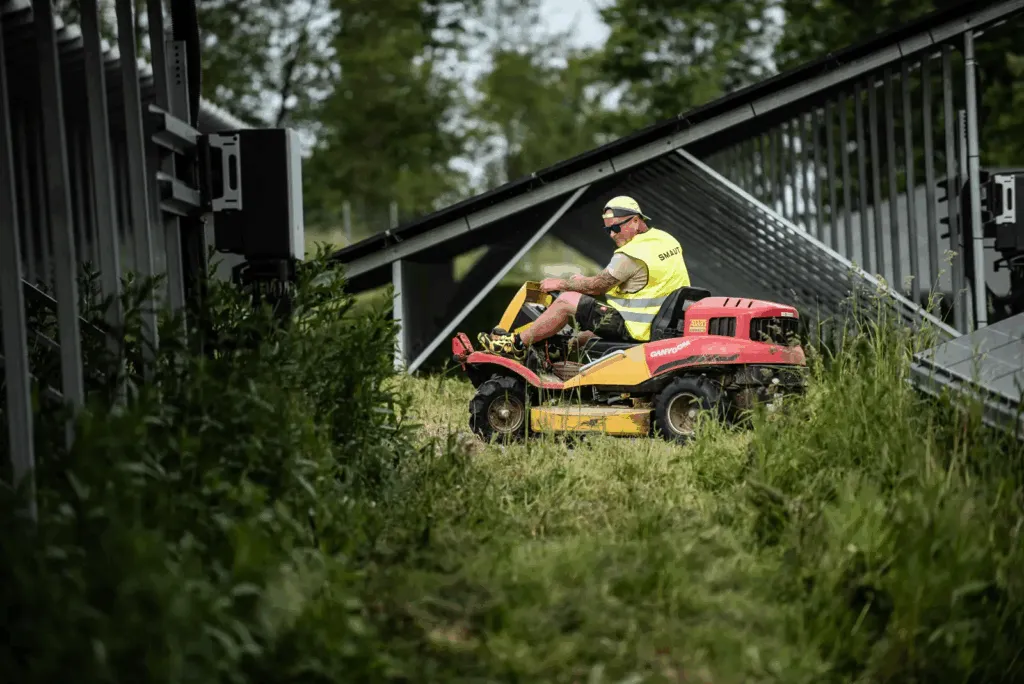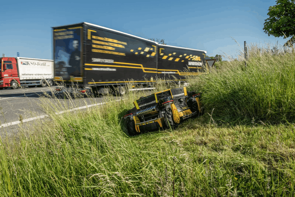 Thanks to the use of autonomous machines, we can also mow hazardous areas, for example around railway corridors, under high voltage at substations or on steep slopes.