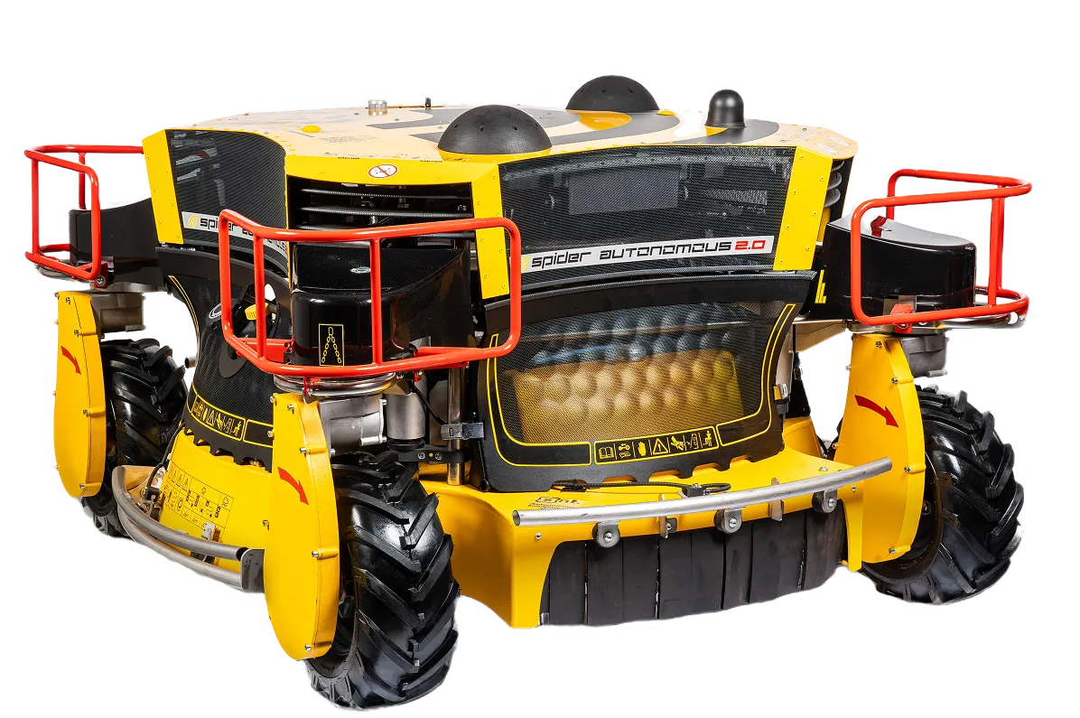 Spider Autonomous 2.0 is a universal commercial mower equipped with field-proven SMAUT autonomous technology. With a height of 92 cm, it is designed for large-scale green care in difficult terrain – delivering fully autonomous mowing on slopes, uneven ground, and in signal-limited environments.